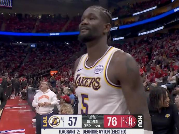 北京时间4月27日,在湖人客场对阵火箭的首轮G4,第三节中段湖人中锋艾顿因为肘击申京脖颈部位,导致直接被吹罚二级恶意犯规驱逐离场。艾顿被驱逐之前,已经12中9得到19+10的两双数据,成为湖人前两节半表现最出色的球员。